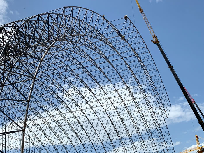 (2)网架加工前应对现场尺寸进行复测,确认无误后方可进行加工、安装;网架制作、运输、安装应遵守《空间网格结构技术规程》JGJ7-2010、《钢网架潍坊螺栓球节点》JG/T 10-2009、《钢网架潍坊螺栓球节点用高强度螺栓》 GB/T 16939-2016、《潍坊钢结构潍坊工程潍坊施工规范》 GB50755-2012、《潍坊钢结构潍坊工程施工质量验收标准》 GB50205-2020。